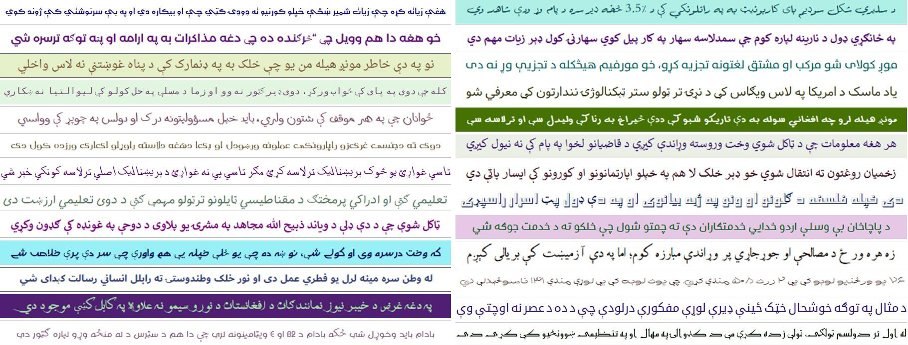 [{'text': 'خو دا ځل راغلو مېلمنو پرې نه ښوده، غږ ېی کړ چې نن به ناری رستوران کې کوو', 'bbox': [22.0, 23.08, 347, 16.36]}]